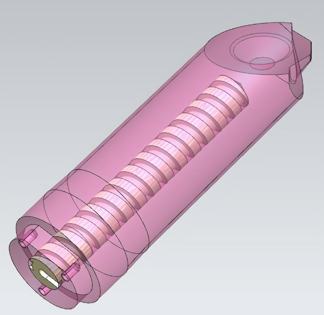 5、對于一些較長的型芯,為了保證冷卻效果,除了采用水井冷卻以外,還可以采用螺旋運水冷卻,如下圖所示: