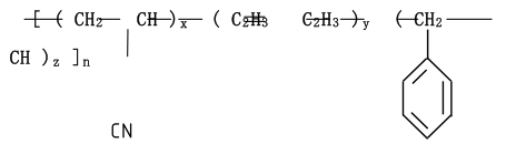 PS,由丙烯腈、丁二烯和苯乙烯三種組元以一定的比例共聚而成,化學結構式為: