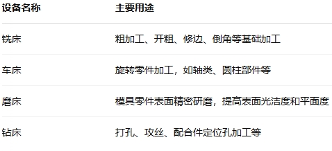 一個成熟的塑膠模具廠,設備構成大致包括: